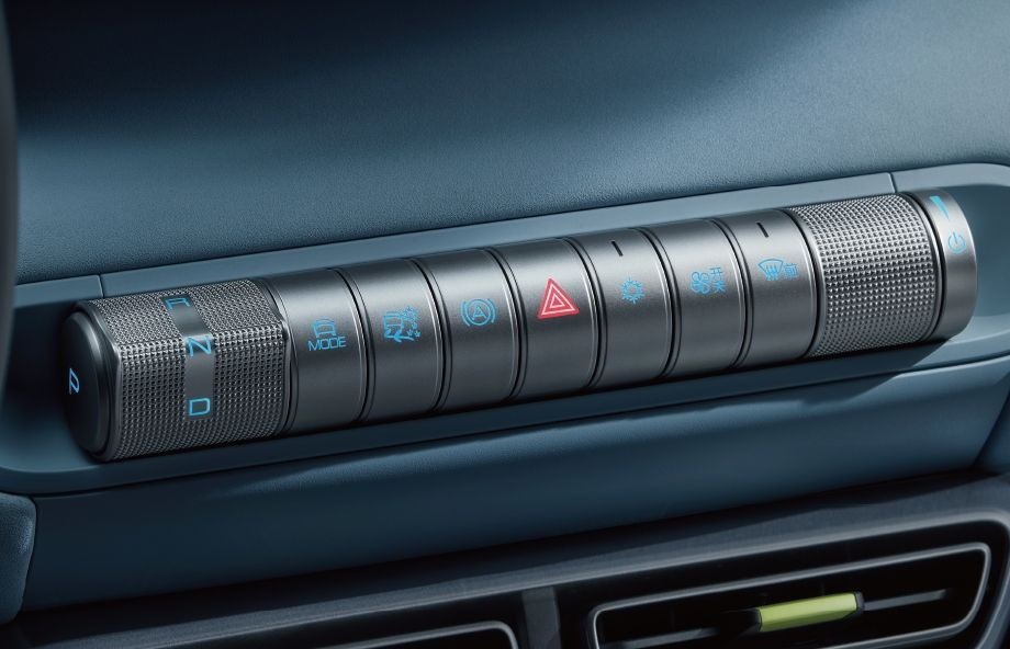 ระบบเกียร์ เป็นแบบปุ่มหมุน ติดตั้งอยู่เป็นชุดเดียวกับปุ่มควบคุมระบบปรับอากาศ เหมือนกับ BYD Dolphin
