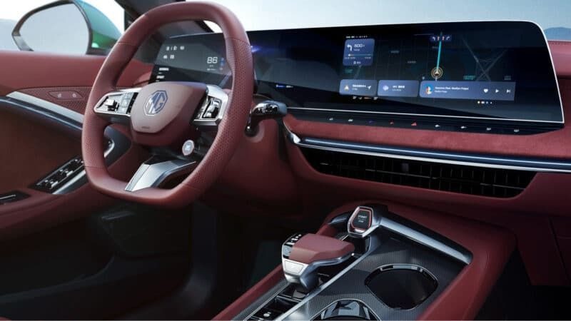 ภายในห้องโดยสารของ MG7 น่าดึงดูดและดูล้ำสมัยสามารถเลือกโทนสีได้ 3 เฉดสี ได้แก่ ดำ เขียว และแดง แผงหน้าปัดดิจิทัลขนาด 10.25 นิ้ว และหน้าจอระบบอินโฟเทนเมนต์ขนาด 12.3 นิ้ว พร้อมบล็อกปุ่มกดระบบสัมผัสแบบ capacitive สำหรับควบคุมระบบปรับอากาศ พวงมาลัยมัลติฟังก์ชันเป็นรูปตัว D แบบสามก้าน