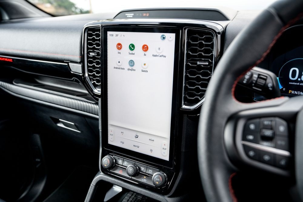-หน้าจอแสดงผลจอสีแบบสัมผัส Multi-Touch ขนาด 12 นิ้ว (Best in Class) ใช้ระบบสั่งงานด้วยเสียง SYNC® 4A รองรับ Wireless Apple CarPlay® และ Android Auto™ ที่ได้รับการพัฒนาให้สะดวกรวดเร็วไปอีกขั้น เพื่อความสะดวกสบายและความปลอดภัย